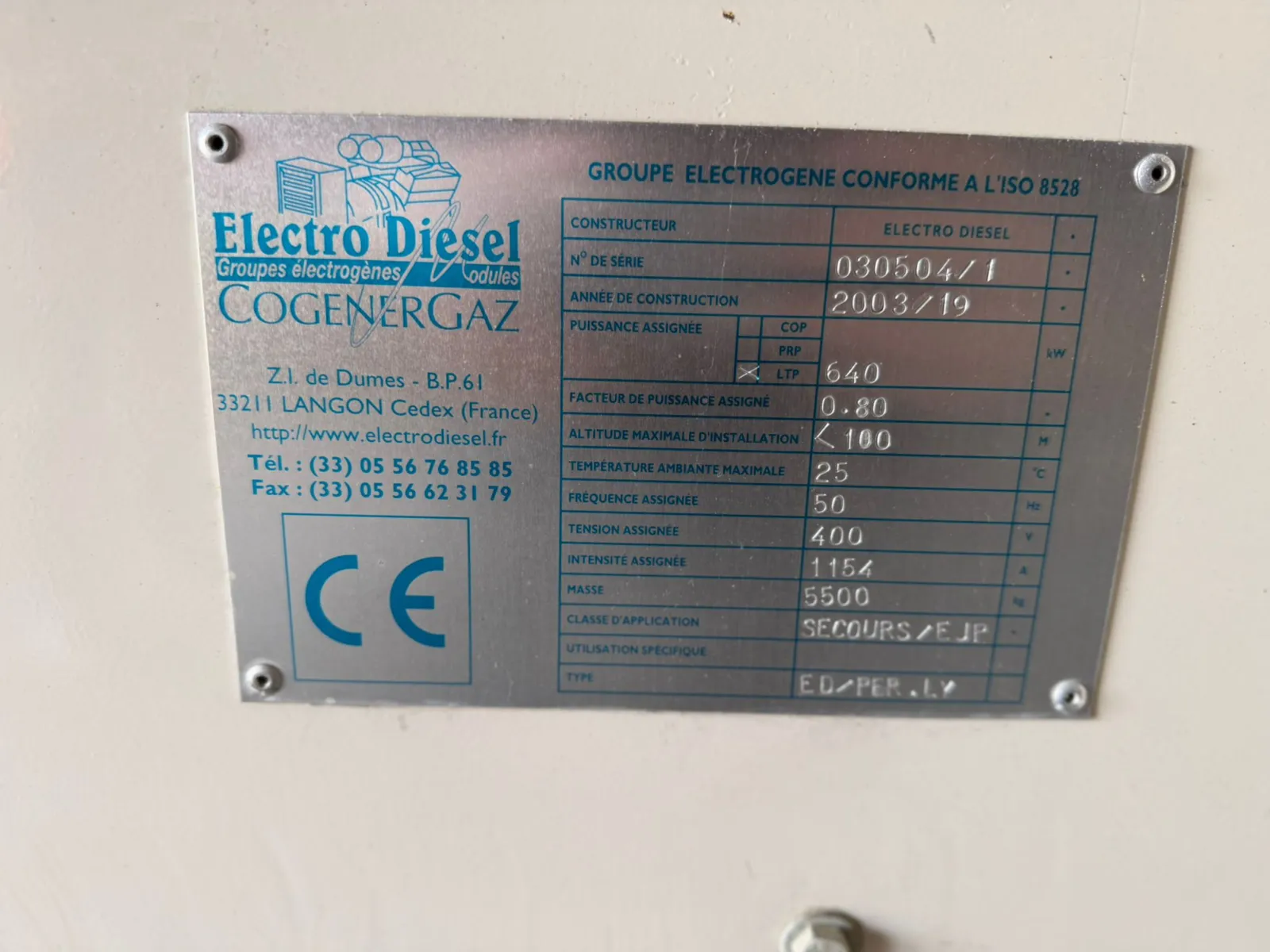 • Alternateurs : puissance de 880 kVA et 920 kVA (secours), adaptés à différents besoins énergétiques