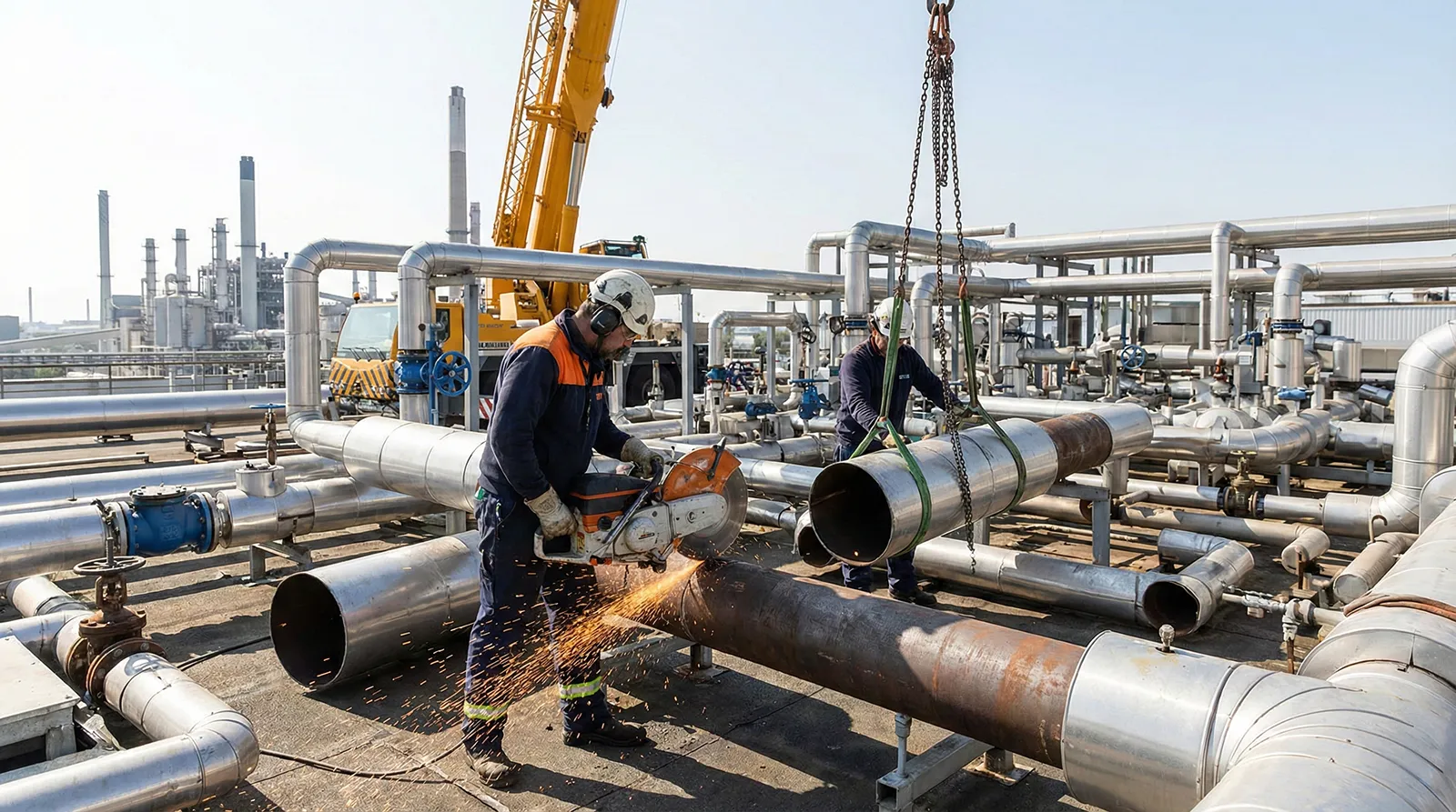 Negomat est spécialiste du démantèlement de tuyauterie industrielle, qu’elle soit située en zone technique, en hauteur, enterrée ou intégrée à une ligne de production.